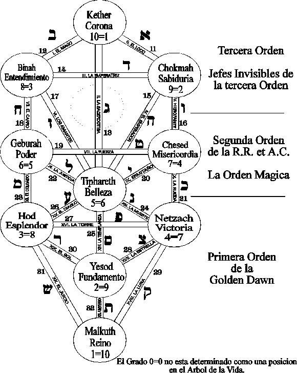 El sistema iniciático de la Orden Hermética de la Aurora Dorada ( Golden Dawn ) está montado sobre el esquema que nos proporciona la Qabalah.
